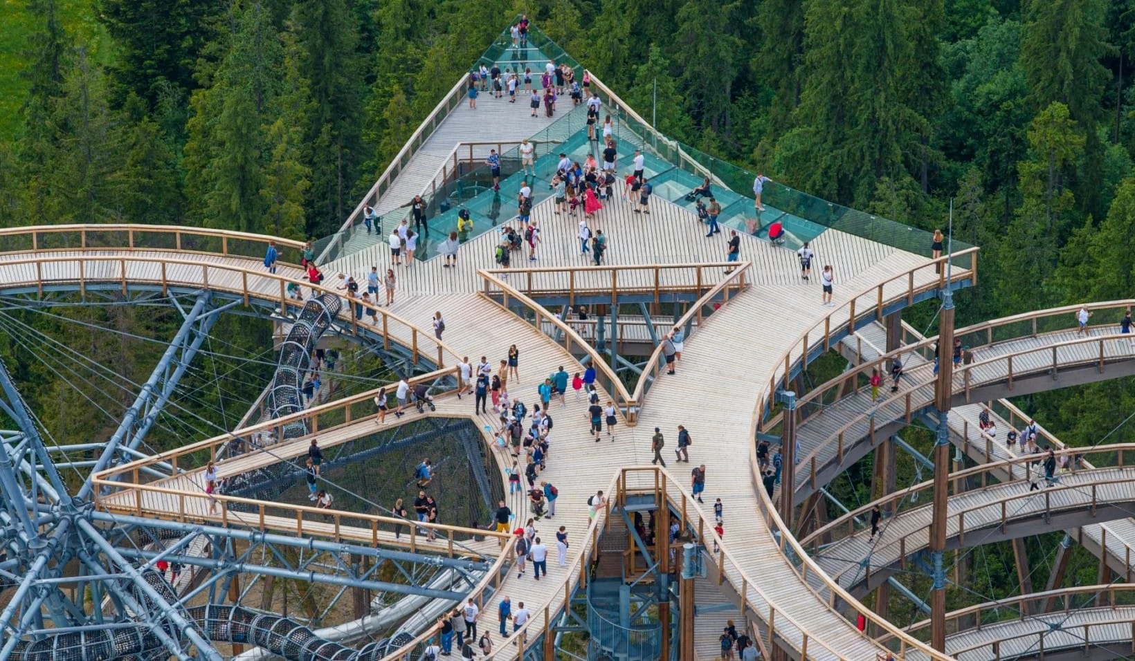 Next, slow the pace and enjoy the scenery from above during a visit to a skywalk treetop walk. Elevated above the forest, this impressive walkway offers panoramic views of the surrounding mountains, valleys, and alpine landscapes.