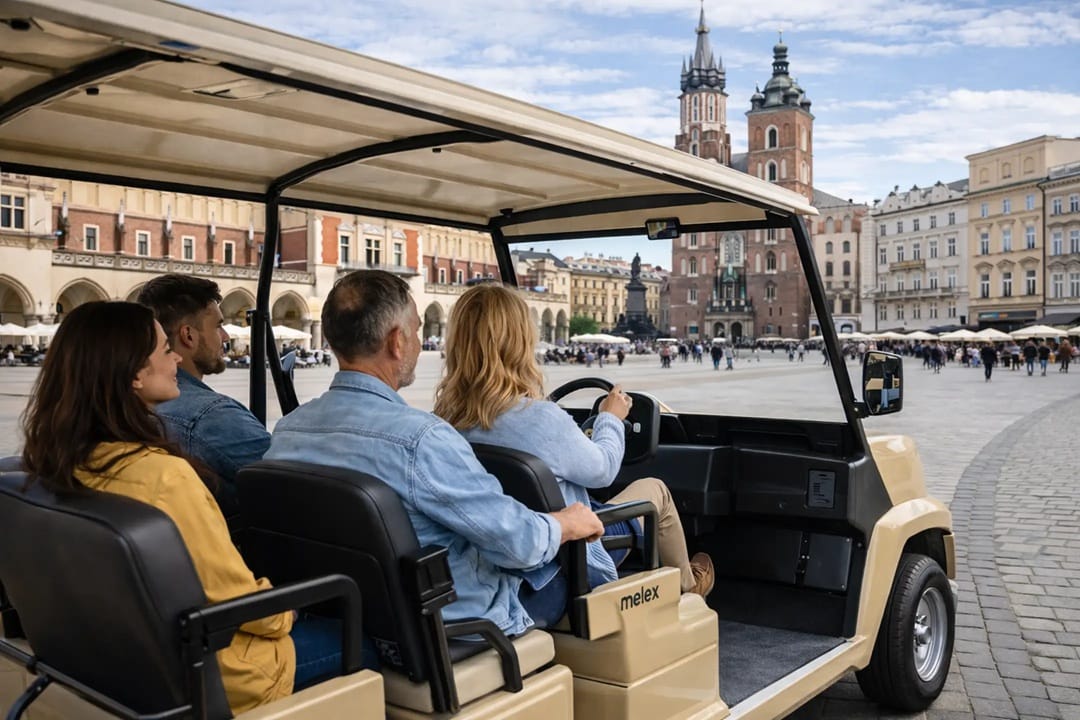 Upon arrival, you start with an electric golf cart (melex) sightseeing tour through Krakow Old Town, perfect as an orientation tour without long walking distances. During this part, you explore: Main Market Square (Rynek Główny) and Historic streets and landmarks of the Old Town.
